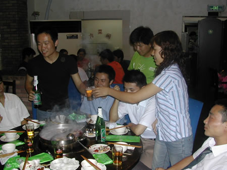 (圖十)活動后來個(gè)聚餐,大家圍著火鍋:其熱濃濃,其樂融融也!