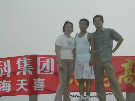 為了節省體力,大家一同坐纜車到達了玉屏峰,此峰可真是人山人海,寸步難移。圖中的松樹,既是大名鼎鼎的迎客松了。