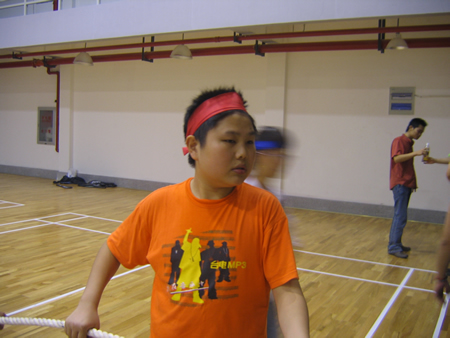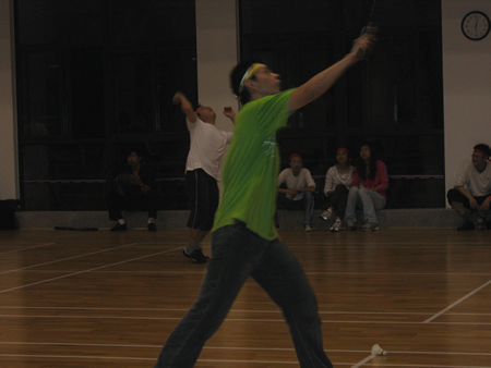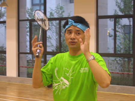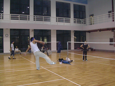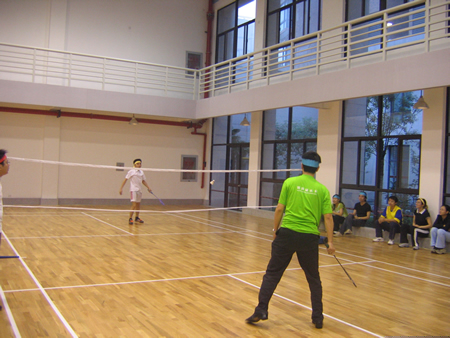 <圖4>首先進行的是羽毛球比賽,孫經(jīng)理VS張翼。大家仔細看看,這可是右手與左手的對絕哦!