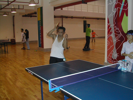 <圖6>乒乓球的比賽也同樣的精彩,瞧這架勢,夠專業(yè)了吧!