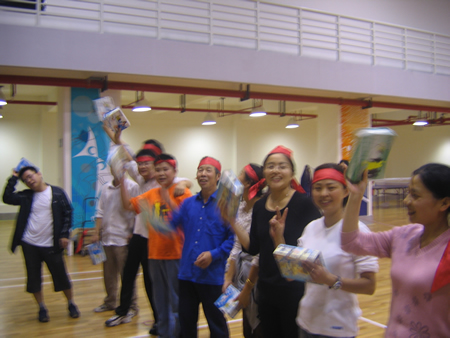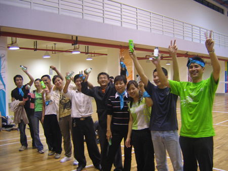 <圖14>經(jīng)過一番激烈的角逐,下面開始了我們的頒獎程序,首先請上鏡的是我們的季軍得主,他們的獎品是名牌洗發(fā)水每人一瓶