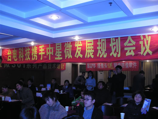 會議召開前奏,南昌分公司早早來到會場把“臺電攜手中星微發(fā)展規(guī)劃會議”的大橫幅掛在會場中間,搶占了至高點(diǎn),高手風(fēng)范。
