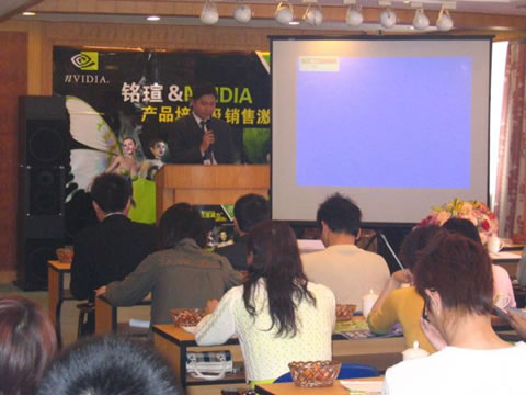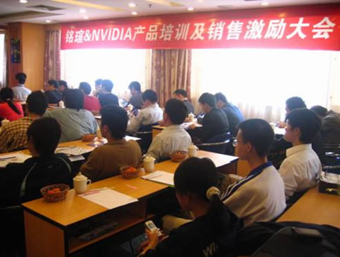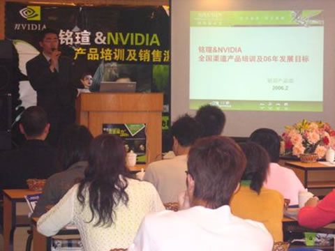 2006年2月16日,繼銘瑄&NVIDIA全國產品培訓及銷售激勵大會在深圳、成都、南昌、南京、上海成功落幕之后,來到華南IT重鎮——廣州。會議現場到會嘉賓包括NVIDIA中國區渠道銷售經理侯先生,商科集團銘瑄品牌經理林先生,商科集團銘瑄品牌經理趙先生,商科集團廣州分公司經理李先生,以及眾多經銷商。大家就過去一年的合作做了全面總結,并著重關注了今年規劃,大家均持樂觀積極的展望態度,銘瑄和NVIDIA也表達了加強合作的意愿。