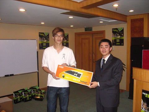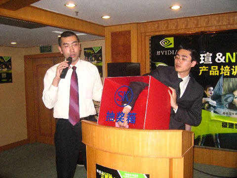 大獎誕生,銘瑄6系顯卡!趙先生和侯先生分別頒獎,經銷商們都興奮不已。