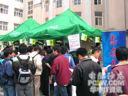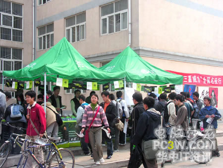 本次華中科技大學(xué)站的巡回展示設(shè)在人氣相對(duì)較旺的華科東區(qū)韻苑學(xué)生公寓內(nèi),整個(gè)演示區(qū)基本上沿襲了前兩站的風(fēng)格,分為產(chǎn)品展示區(qū)及現(xiàn)場(chǎng)演示區(qū)。作為一所理工科為主的學(xué)校,這樣的展示自然吸引了不少同學(xué)駐足圍觀(guān),一大早展臺(tái)還在緊張的布置之中,就有不少同學(xué)前來(lái)觀(guān)展及體驗(yàn)。