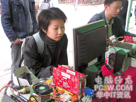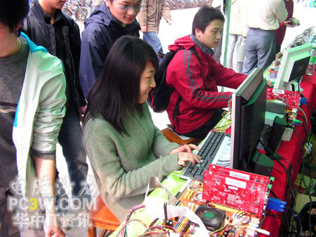第一個(gè)進(jìn)行SLI平臺(tái)體驗(yàn)的竟然是一位MM,果然是巾幗不讓須眉啊?此炀毜耐嬷鴺O品飛車(chē)地下狂飆2,小編也不由感慨,這里不愧是華中地區(qū)最好的理工科學(xué)府啊,果真的臥虎藏龍。