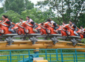 摩托過山車 東半球首臺,時速0到80公里彈射式加速僅需2.8秒,什么叫風馳電掣,強烈建議長發MM玩,那叫一個帥(攝影師:真的不是我手抖,太快了)