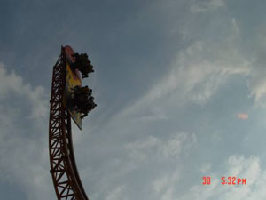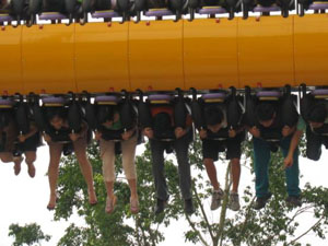 十環過山車 最聲名顯赫的游戲,亞洲首臺、全世界第二臺(僅在英國有一臺)、單項設備投資超過人民幣一億元,打破游樂設備環數最多的世界記錄,并創造了世界吉尼斯記錄。