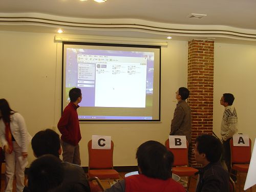 接下來的第二個游戲,是搶答題,當然嘍,我們問的問題都是和商科有關的題目嘍,各位媒體朋友平常真沒少下功夫,對我們提出的關于我們的公司及品牌竟然都能搶答了