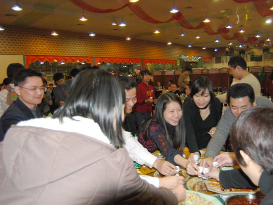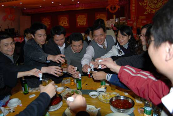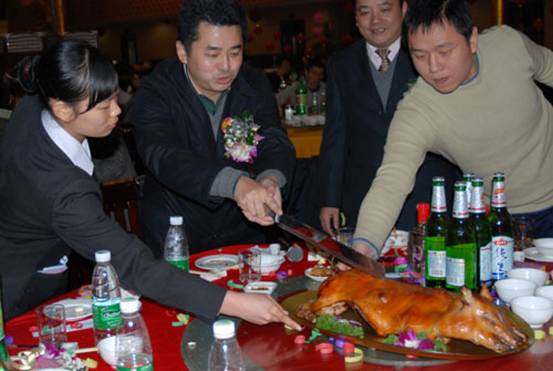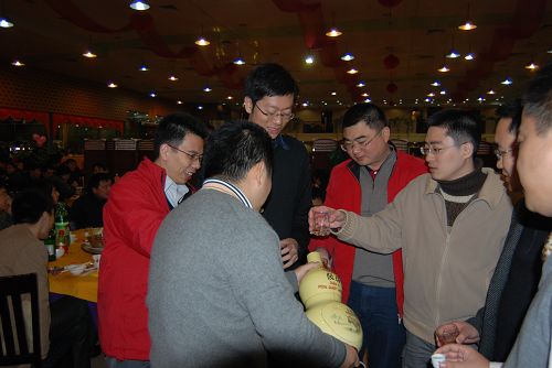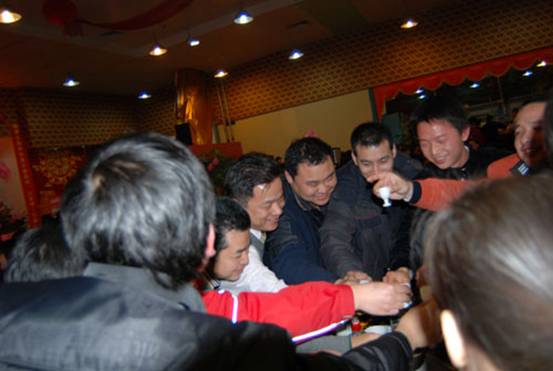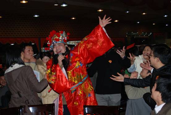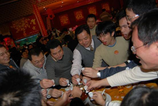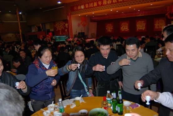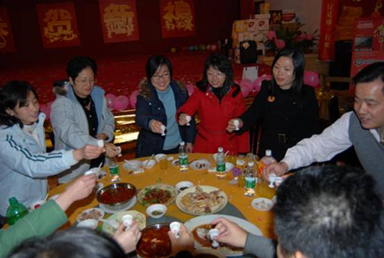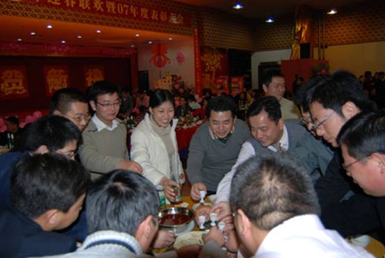 不知不覺兩個多小時已經過去了,在同事們快樂的笑聲中,游戲節目圓滿結束了。大家大概也都饑腸轆轆了,公司為全體員工準備了豐盛的晚宴享用,大餐開始了。