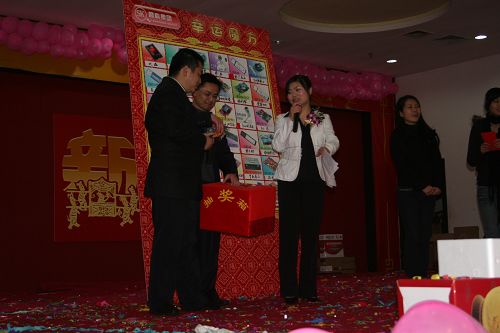 主持人宣布抽獎活動正式開始,各個部門經理和領導分別上臺代表,來為大家抽出各個獎項。隨著獎品價值的不斷提升,現場的氣氛一浪高過一浪。