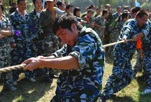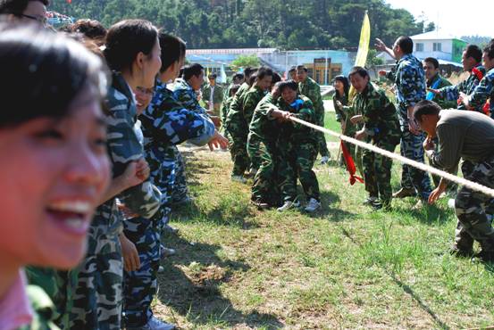 一轉眼,一上午的時間就過去了,拓展活動也基本結束,安排在最后的是商科的傳統項目:拔河,這個項目很消耗體力,所以安排在最后。