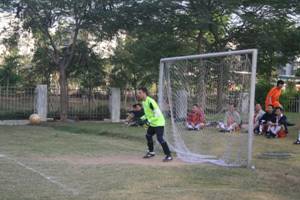 近日,商科足球隊(duì)?wèi)?yīng)邀去參加一場足球友誼賽,3點(diǎn)半到達(dá)目的地,換好隊(duì)服,做做準(zhǔn)備活動(dòng)擺擺陣勢。看,商科的小伙子各個(gè)精神抖擻,雖是客場做戰(zhàn),氣勢也不讓分毫。悄悄的說,老總親自帶隊(duì)自然底氣十足。再看,主場的帥哥也不耐,各個(gè)摩拳擦掌躍躍欲試。看樣子今天的比賽頗有看頭。