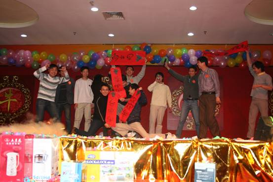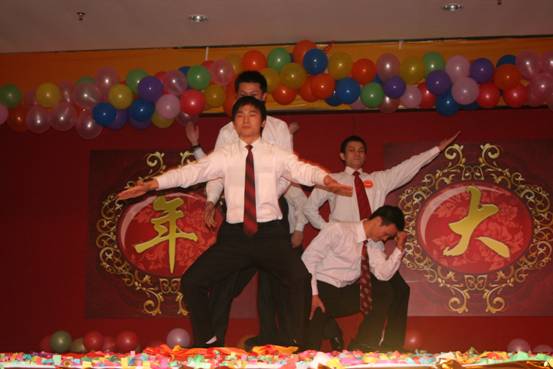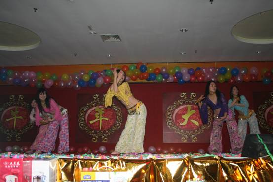 頒獎活動結(jié)束后,迎春晚會正式開始。首先是公司美女們的舞蹈節(jié)目,為了排練這個節(jié)目,公司的姐妹們連續(xù)幾晚都自發(fā)留在公司里辛苦演練。