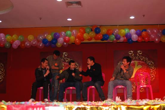 接下來仍然是小品:《荊軻刺秦王》,同事們被詼諧的表演逗的哄堂大笑。