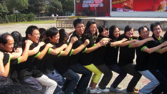 開始緊張、艱難的拓展訓(xùn)練之前,當(dāng)然也少不了輕松的熱身。我們?cè)谝辉褰钦胰嗣駧诺挠螒蛑校憩F(xiàn)出來前所未有的活潑,不管是誰剎那間都變的無比可愛起來。