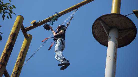 十點(diǎn)二十分,高空項(xiàng)目。訓(xùn)練還沒開始,光是它8米這個(gè)數(shù)字都已讓人聞而生畏了。但所有人都克服了心中的恐懼,不管是輕松的還是艱難的,不管是哭著的還是笑著的,都突破心中極限,順利的完成了任務(wù)!