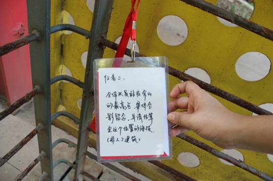 在時(shí)間到達(dá)之前,每個(gè)組的十個(gè)尋寶任務(wù)都基本上完成了,陸續(xù)在山下的廣場集合。手中的任務(wù)卡原來是個(gè)拼圖,大家一起,拼出了大大的商科LOGO