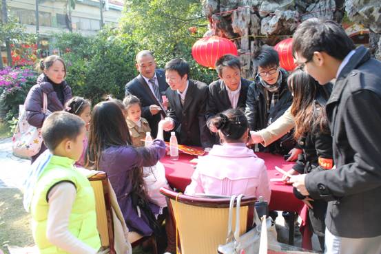 整個會場內(nèi)外都布置的很漂亮,花園里掛著許多燈謎,答對燈謎的人就可以領到小禮品,大家紛紛開動腦筋絞盡腦汁,場面十分熱鬧。