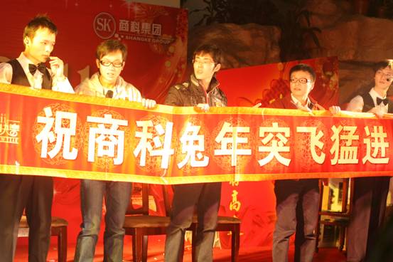燈謎兌獎處 進行曲之一:玉兔迎春春入戶 之表彰大會。這一部分主要是表彰2010年中工作認真,表現(xiàn)良好,取得了優(yōu)異成績的員工們,部分勤奮敬業(yè)的員工獲得了這一殊榮。