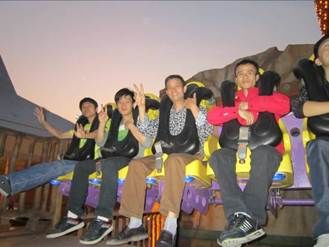吃過(guò)晚飯,我們來(lái)到了期待已久的夢(mèng)幻谷,聽(tīng)說(shuō)里面有很多大型娛樂(lè)項(xiàng)目,所以大家都特別興奮啦!