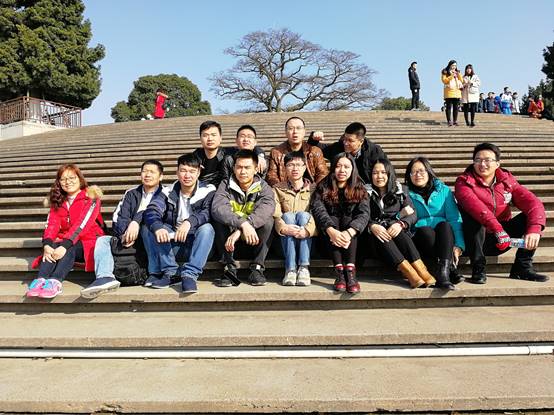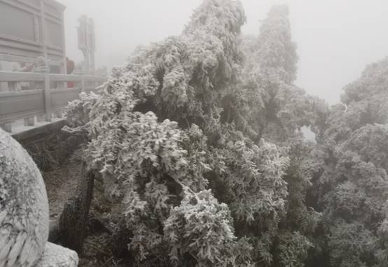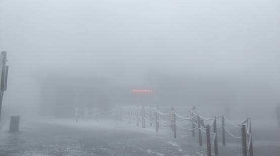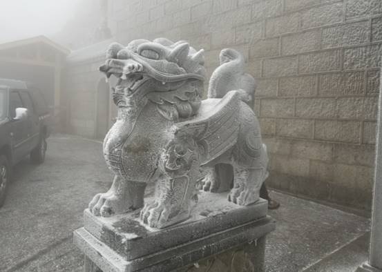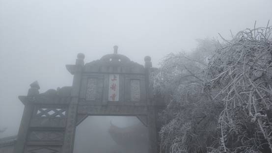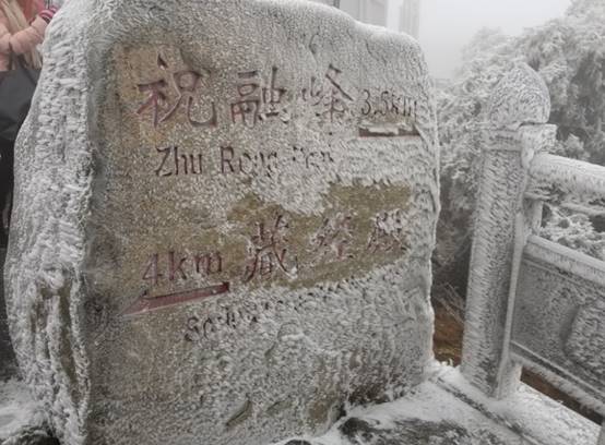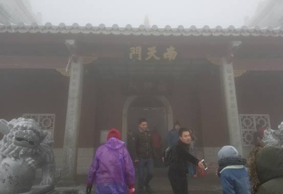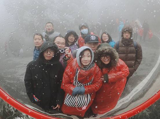 山腳下集體照,沒有去的時候一直覺得衡山肯定不會冷到哪里去,可是一下車我們就發現錯了,風是那么的大,空氣中的濕氣是那么的重。坐上景區的小車開上山頂后,一打開門,眼前白茫茫的雪景讓人眼前一亮,2017年的第一場雪!
