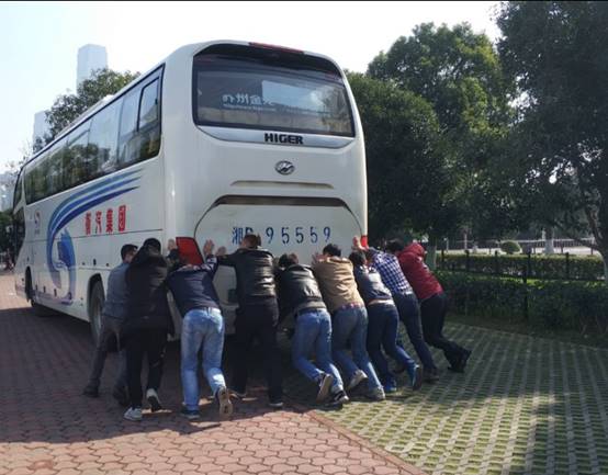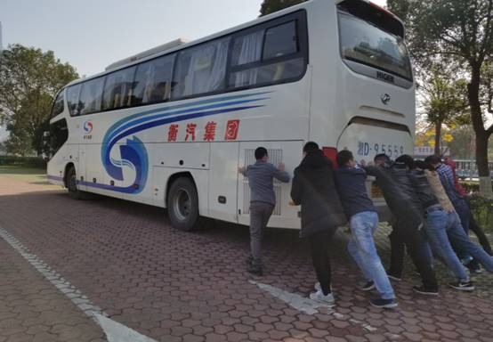 當中還出現了小插曲,旅游車電瓶沒電了,總監帶著大家一起推車!