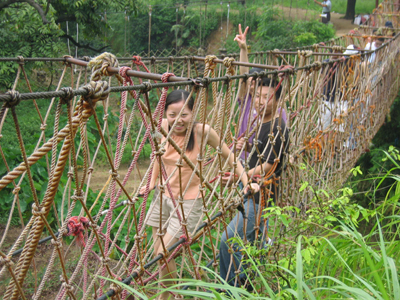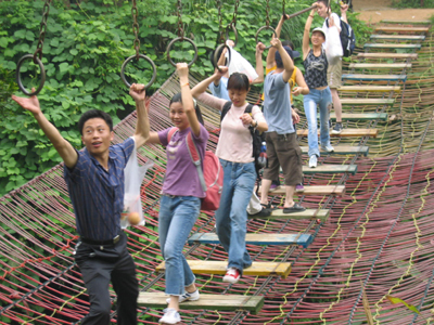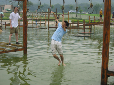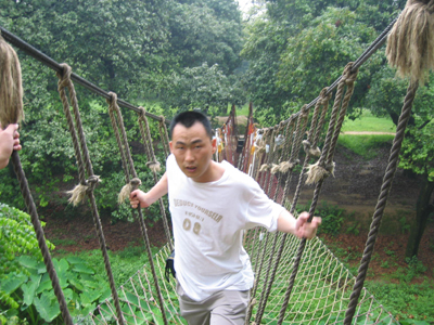 好不容易順利的通過了第一個險關,哪知道這時候,雷聲大作,天空一黑,一張巨網將眾人一一捆住。幸好在商科一行里面,有“無”功高強之士,將眾美女團團救助了出來!