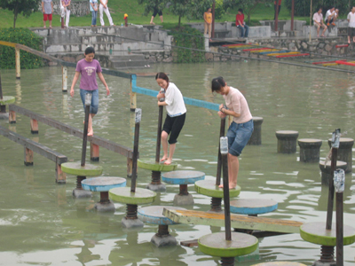 有個“仙女”居然雙腳“離水”三尺,踩著繩梯悠閑自得的走來走去。