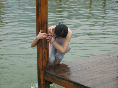 就在這時候,突然,一翻地動山頭搖之后,有人在大喊“救命!”,眾人仔細一看,乖乖不得了,原來是有位不會游泳的仙女掉進了水里。