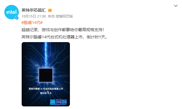 據英特爾官方消息,英特爾于10月16日發布用于臺式電腦的第14代酷睿 Raptor Lake Refresh 處理器。