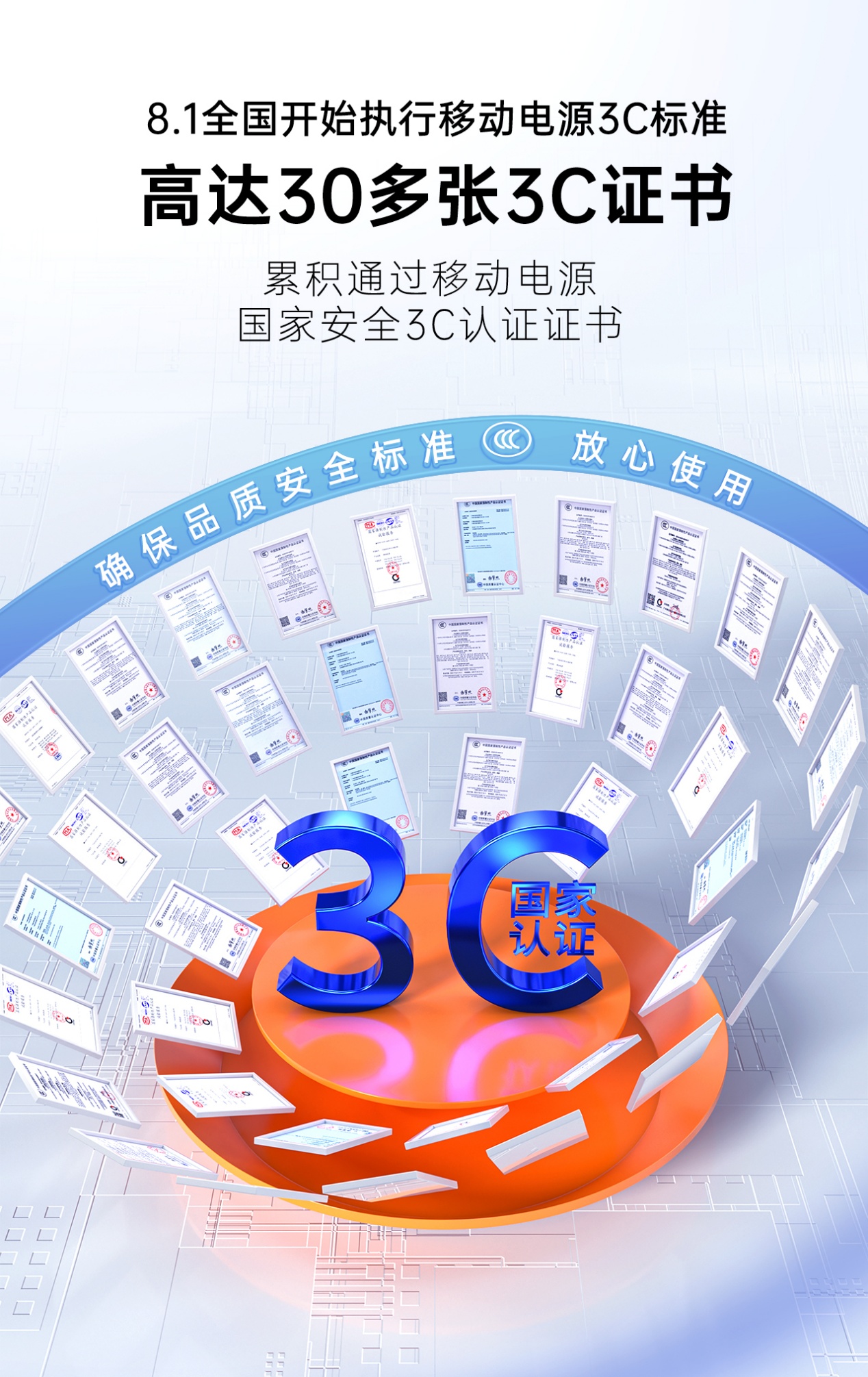 3C認證是為保護消費者人身安全和國家安全,加強產品質量管理而實施的一種產品合格評定制度。自2023年8月1日起,移動電源(充電寶)被正式納入3C認證目錄,自2024年8月1日起,未獲得3C認證的移動電源產品將不得在中國市場銷售。