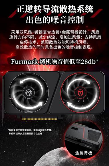 在散熱與靜音方面,該卡采用了正逆轉導流散熱系統,配備雙風扇、鍍鎳復合熱管與金屬背板,在確保高性能持久釋放的同時,將運行噪音控制在低水平,讓創(chuàng)作過程更專注。