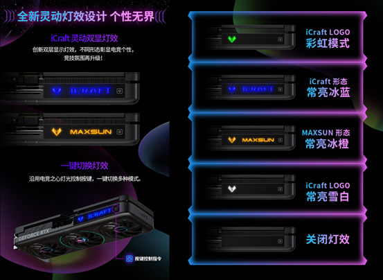 全新 iCraft 靈動(dòng)雙顯燈效更是點(diǎn)睛之筆,多種燈光形態(tài)可自由切換,搭配一鍵模式切換功能,能打造專屬電競(jìng)氛圍,讓你的主機(jī)在眾多裝備中脫穎而出,成為全場(chǎng)焦點(diǎn)。接口方面,DP*3+HDMI 的全接口組合,支持多顯示器連接,輕松滿足不同顯示設(shè)備的使用需求,無論是游戲?qū)?zhàn)還是日常辦公,都能無縫適配。