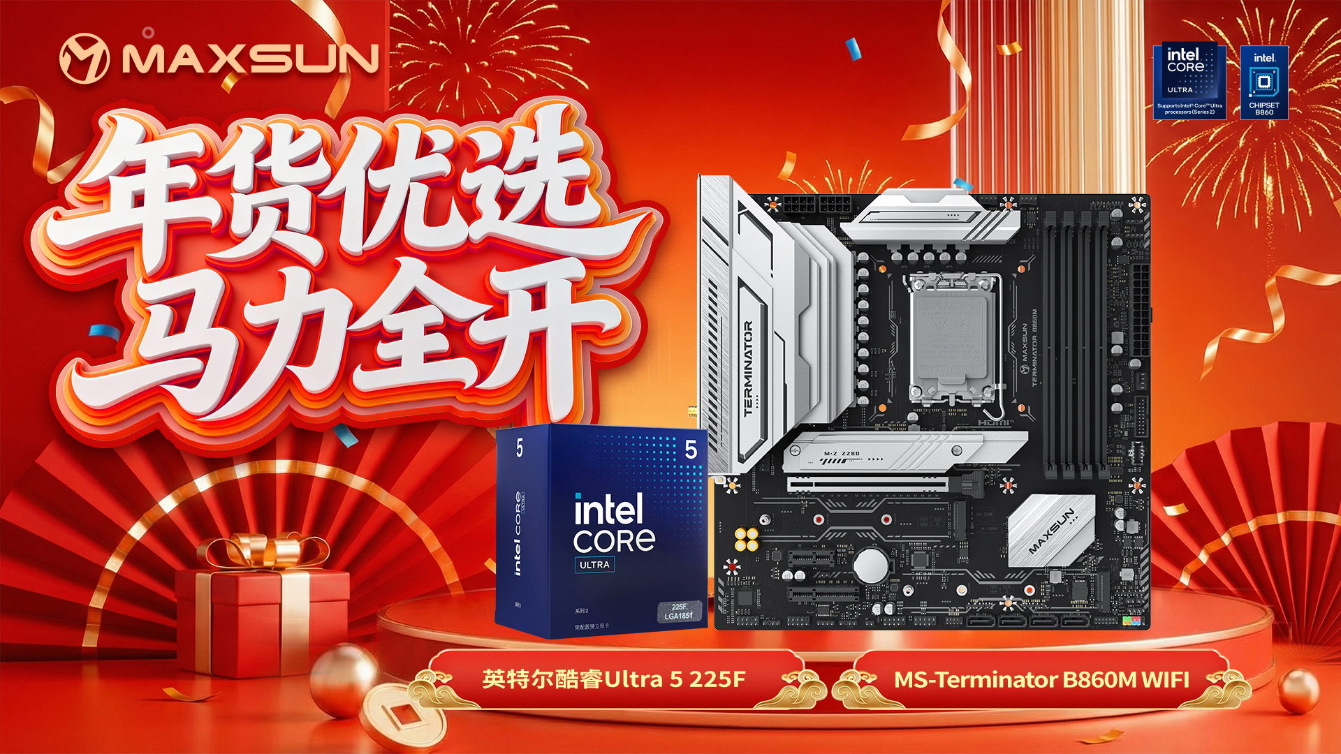 年貨節裝機,選對組合才能實現“花小錢辦大事”。銘瑄 Terminator B860M WIFI 主板搭配英特爾酷睿 Ultra 5 225F 處理器,這套高性價比硬件組合,拒絕湊活,讓你以合理的預算,解鎖旗艦級的穩定性能與絲滑體驗,兼顧游戲娛樂與日常辦公雙重需求。這個年貨節,不妨入手這套年貨組合,煥新主機不將就,讓新一年的戰力直接拉滿!